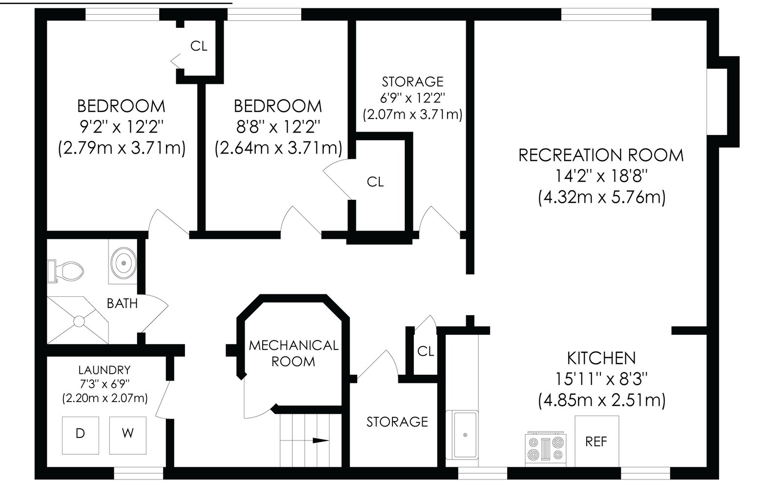 The bright and versatile lower level, easily accessible from a side entrance, is ideal for multi-generational living or hosting guests. It offers two additional bedrooms, a generous laundry room, and a second kitchen and living room, all filled with natural light from the large bi-level windows.